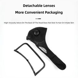 Stay protected during cycling and outdoor activities with this versatile face mask. Five-layer filtration blocks dust, pollen, droplets, and fine particles. Waterproof fabric handles rain, fog, and splashes. Detachable goggles shield eyes from wind, insects, and sun glare. Ergonomic design ensures comfort and breathability with a large valve for hot air release. Ideal for bicycles, e-bikes, motorcycles, hiking, camping, and sports adventures year-round.