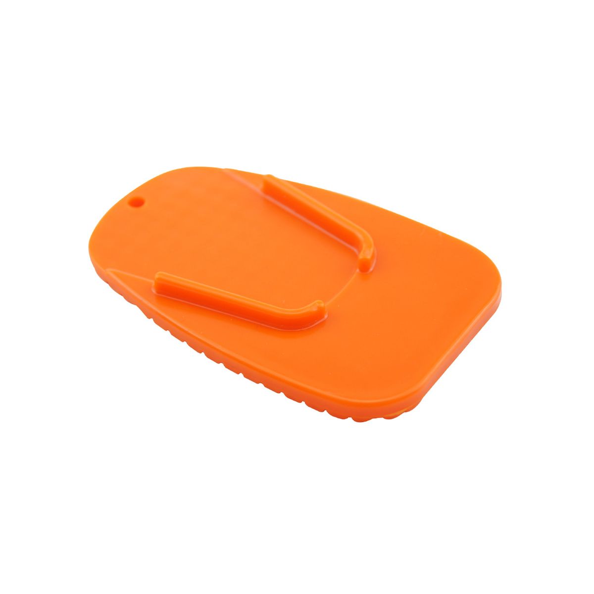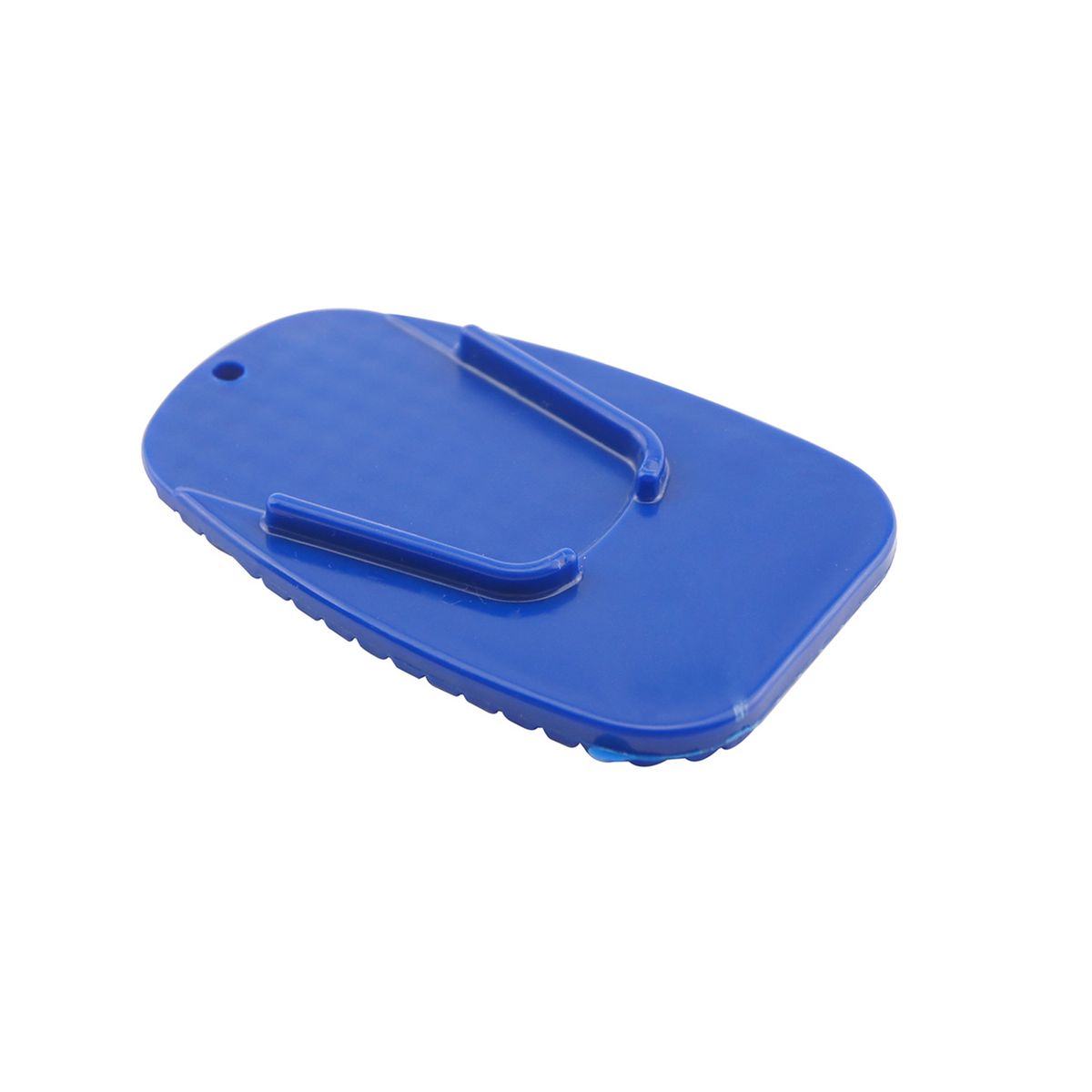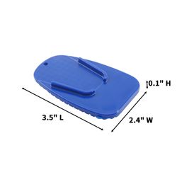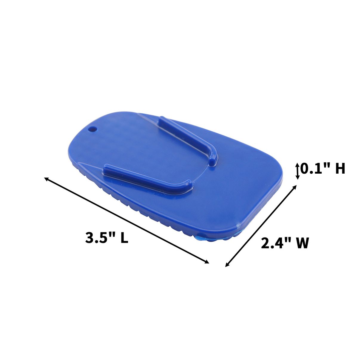 This rigid pad distributes weight from a parked bike to help prevent sinking on soft ground such as grass, sand, dirt, or heated asphalt. The compact plate stores easily in a pocket, tank bag, or saddlebag so it is ready at rallies, outdoor events, or rest stops. A screen printed mark on the face offers clear identification for dealerships or rider groups. The size is 3.5" long by 2.4" wide by 0.1" high. Each piece is supplied in a poly bag for simple carry.